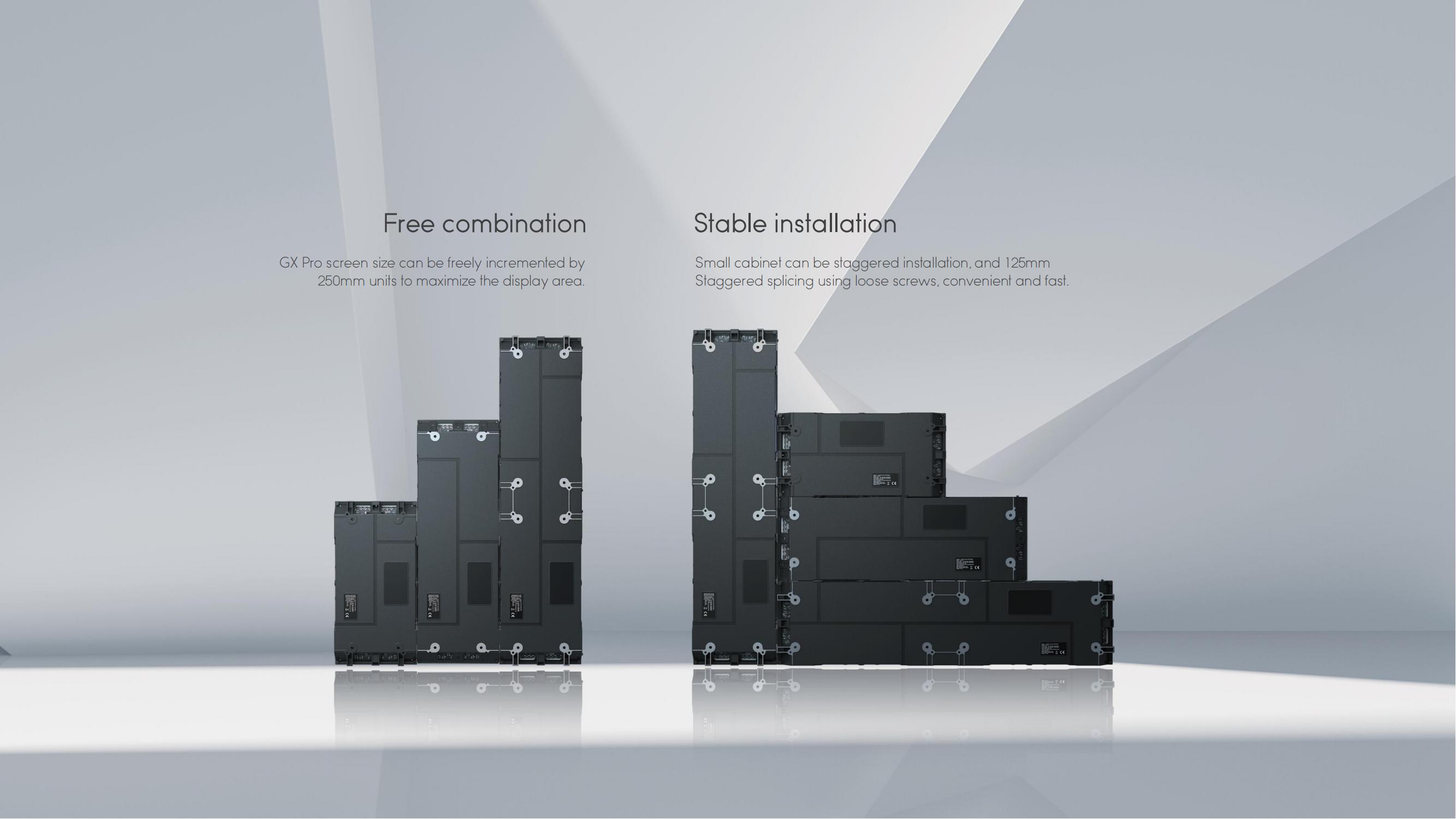 Extremely simple, versatile sizes, powerful functionality, and energy efficiency, GX Pro series is designed to provide high-performance and flexible LED display solutions for indoor application scenarios (high-end retail stores, commercial complexes, and airport traffic displays) to meet diversified needs.